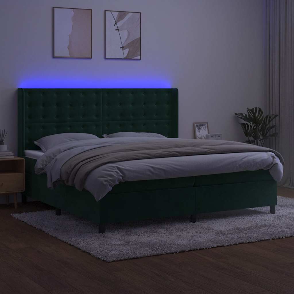 Letto a Molle con Materasso e LED Verde Scuro 200x200cm Velluto 3139826