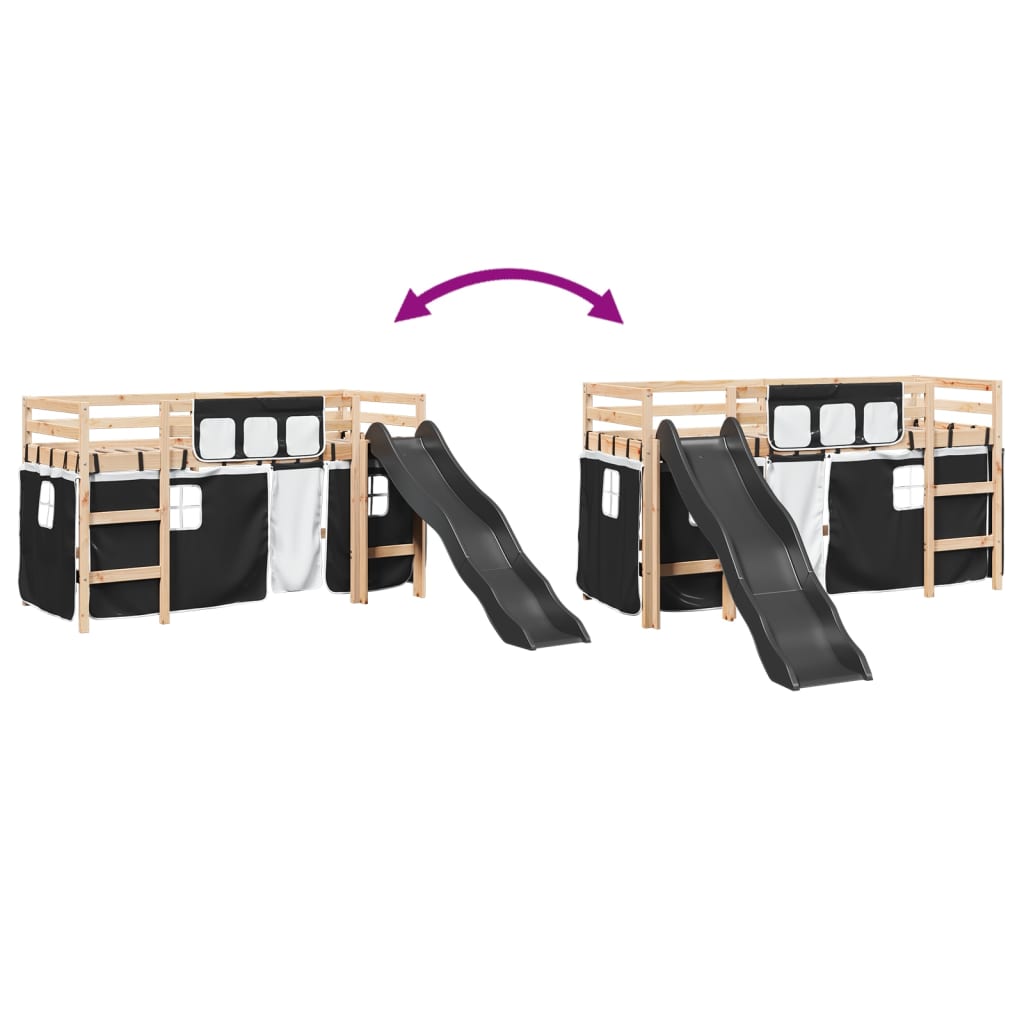 Letto a Soppalco Bambini con Tende Bianco e Nero 90x190 cm Pino 3309083