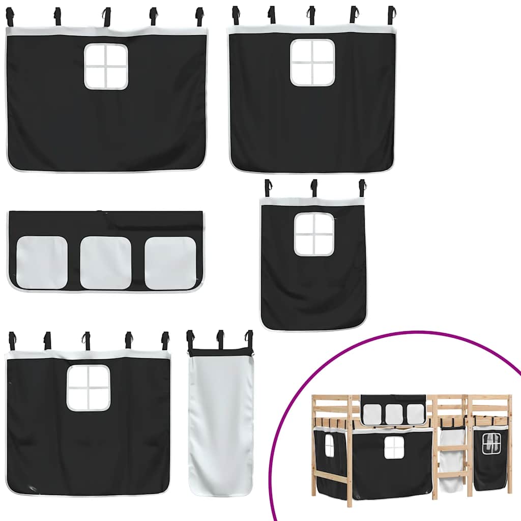 Letto a Soppalco con Tende Bambini Bianco e Nero 80x200 cm Pino 3283808