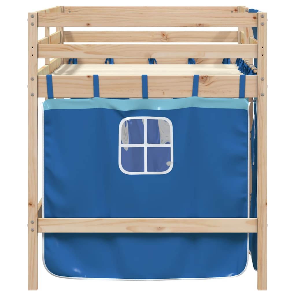 Letto a Soppalco con Tende Bambini Blu 90x200 cm Massello Pino 3283818