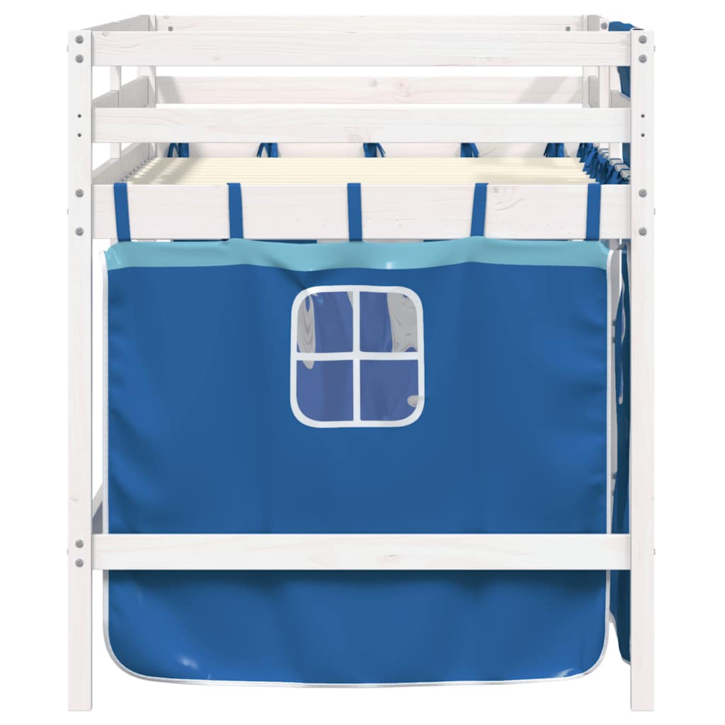 Letto a Soppalco con Tende Bambini Blu 90x200 cm Massello Pino 3283821