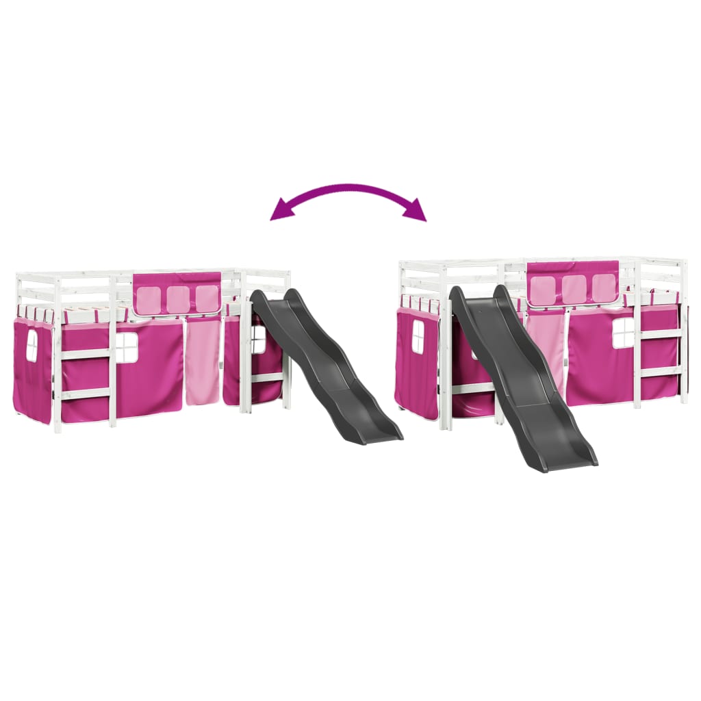 Letto a Soppalco con Tende Bambini Rosa 80x200 cm Massello Pino 3309070