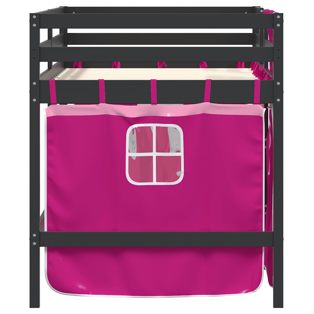 Letto a Soppalco con Tende Bambini Rosa 90x200 cm Massello Pino 3283825