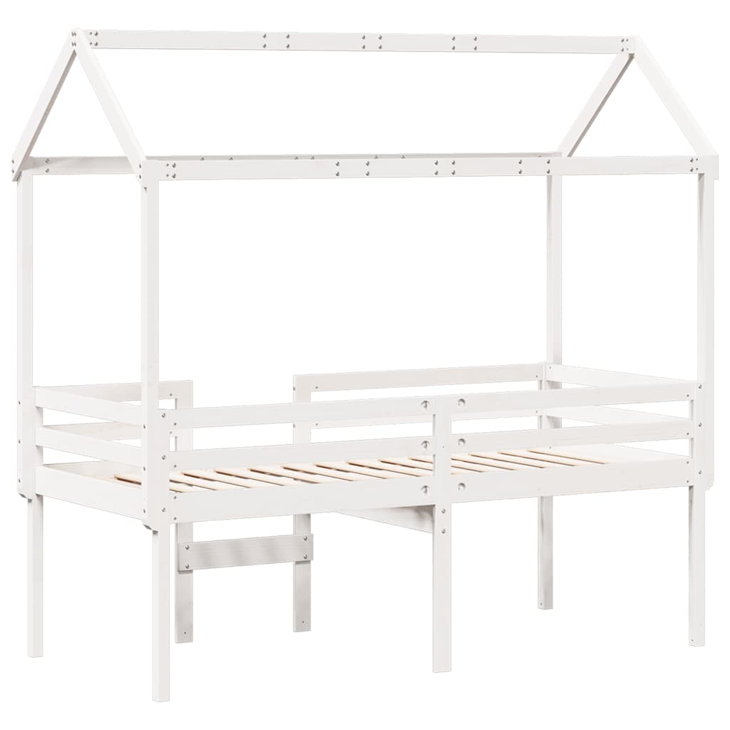 Letto a Soppalco con Tetto Bianco 75x190 cm in Legno di Pino 3282142
