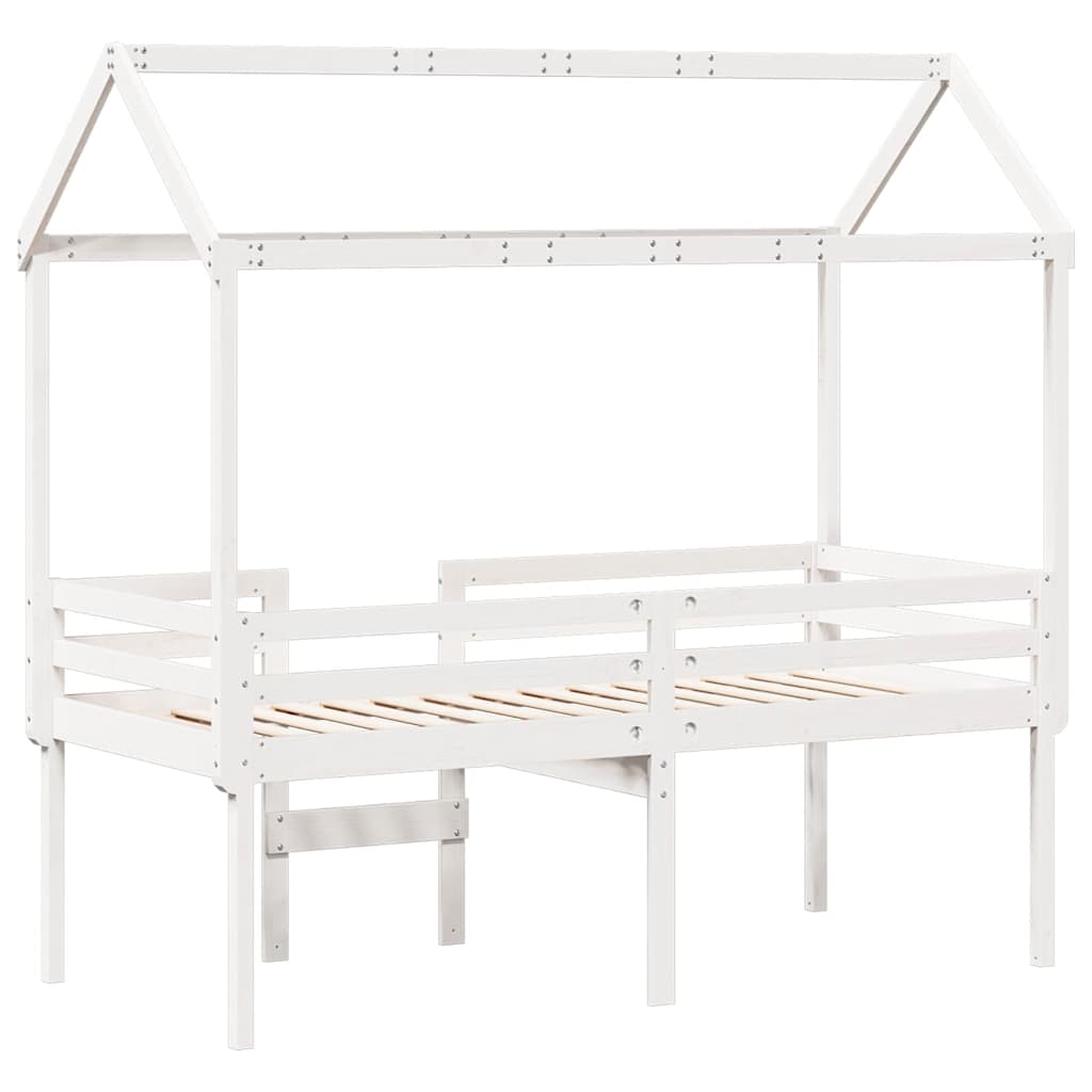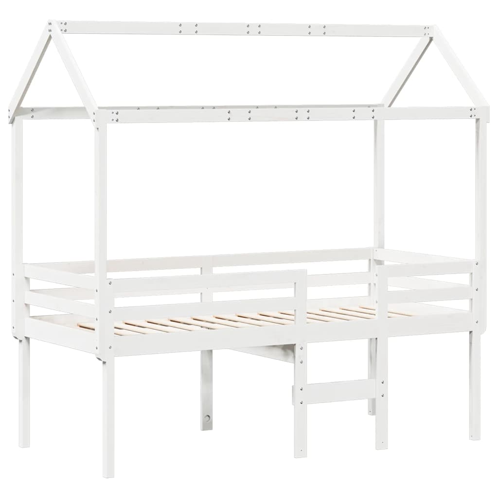 Letto a Soppalco con Tetto Bianco 80x200 cm in Legno di Pino 3282136