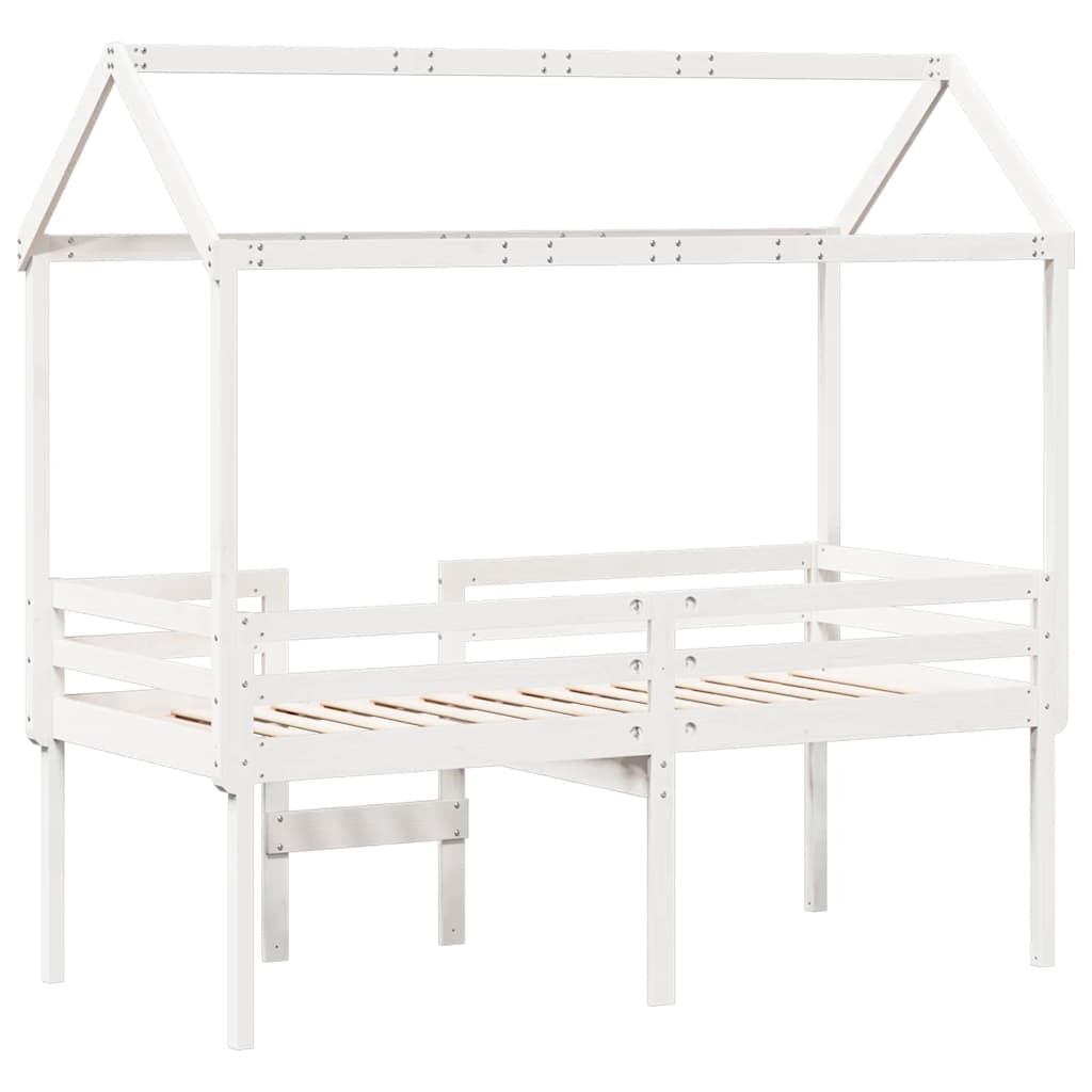 Letto a Soppalco con Tetto Bianco 90x200 cm in Legno di Pino 3282133