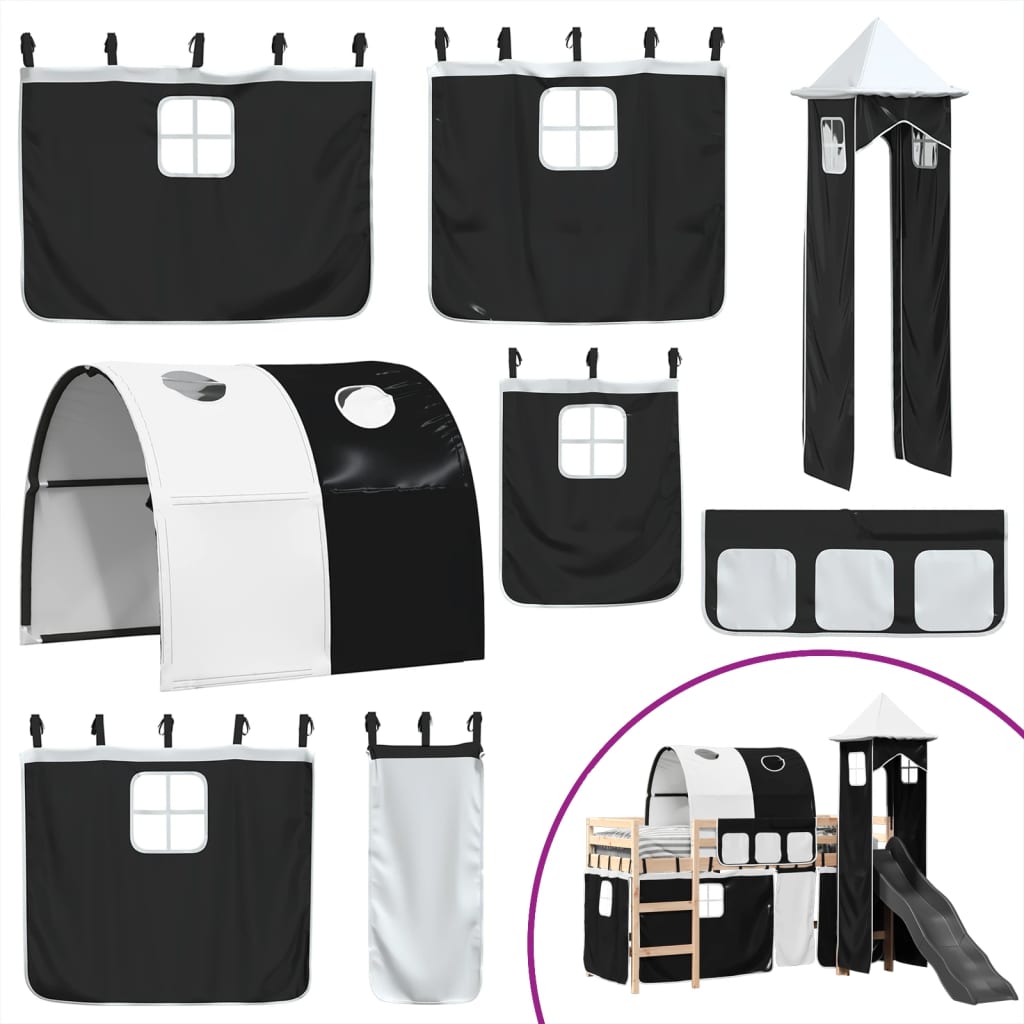Letto a Soppalco con Torre Bambini Bianco e Nero 80x200cm Pino 3309146