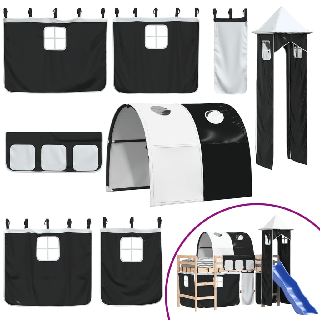 Letto a Soppalco con Torre Bambini Bianco e Nero 90x200cm Pino 3207099