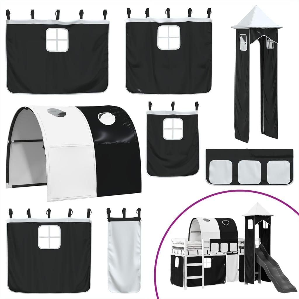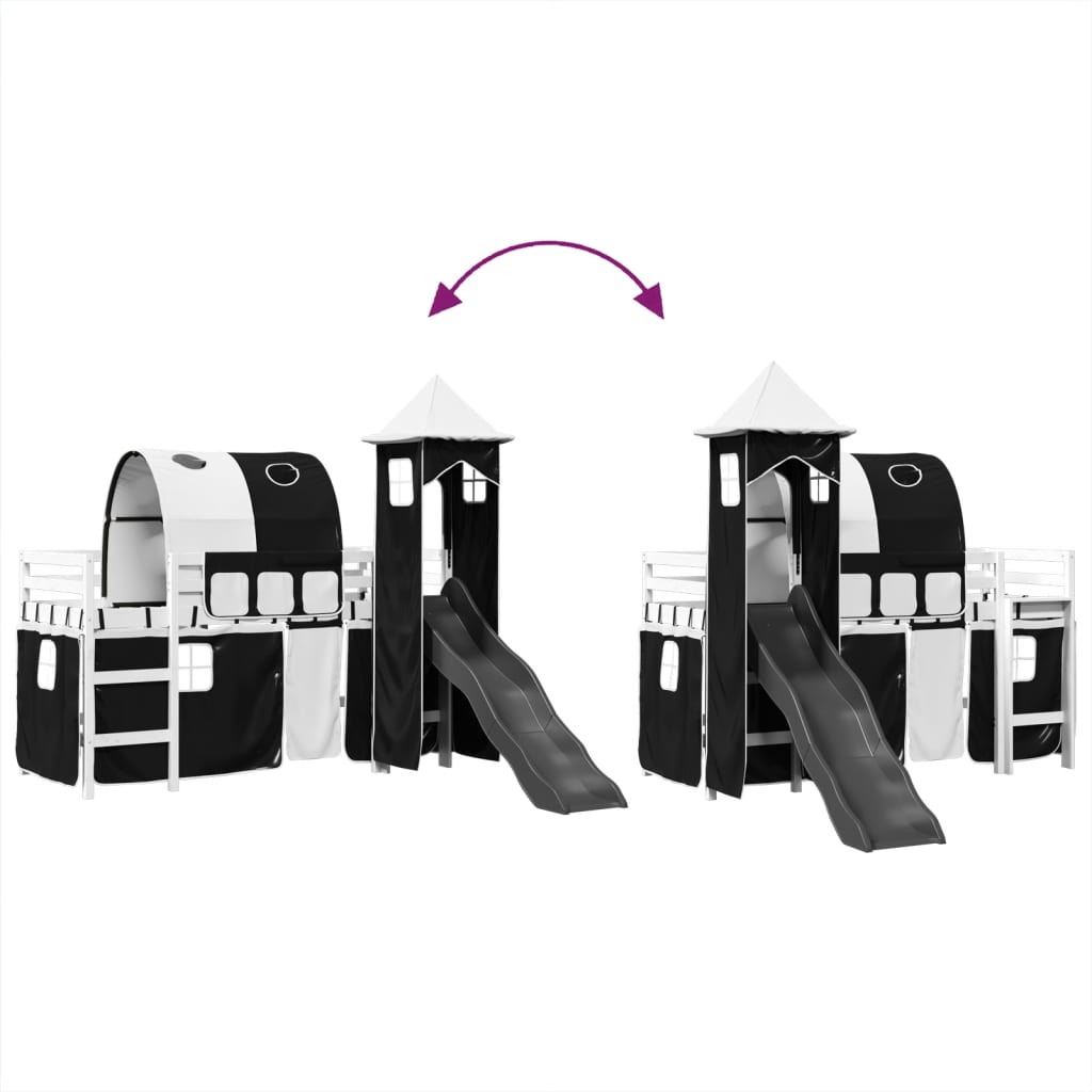 Letto a Soppalco con Torre Bambini Bianco e Nero 90x200cm Pino 3309158