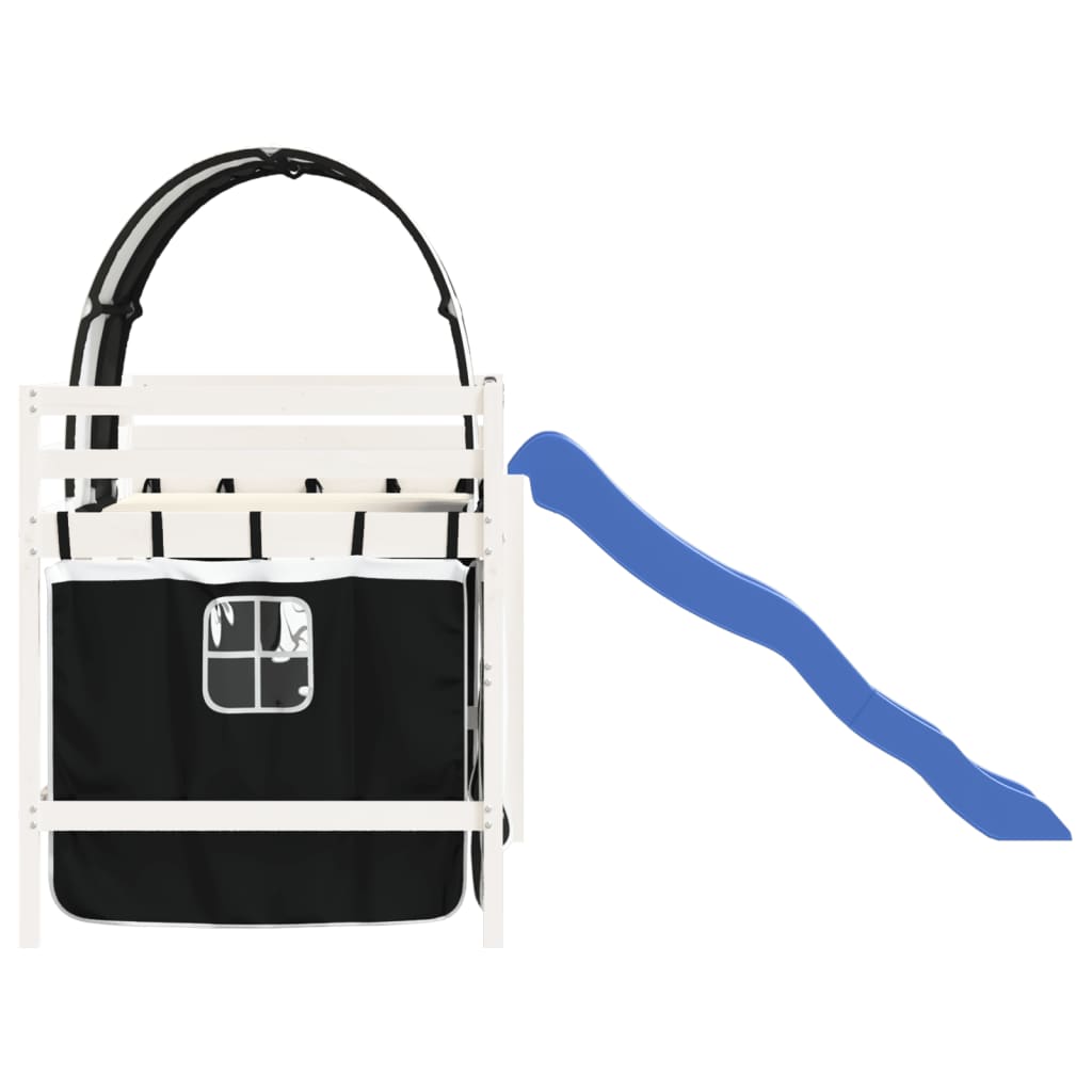 Letto a Soppalco con Tunnel Bambini Bianco e Nero 90x190cm Pino 3207057
