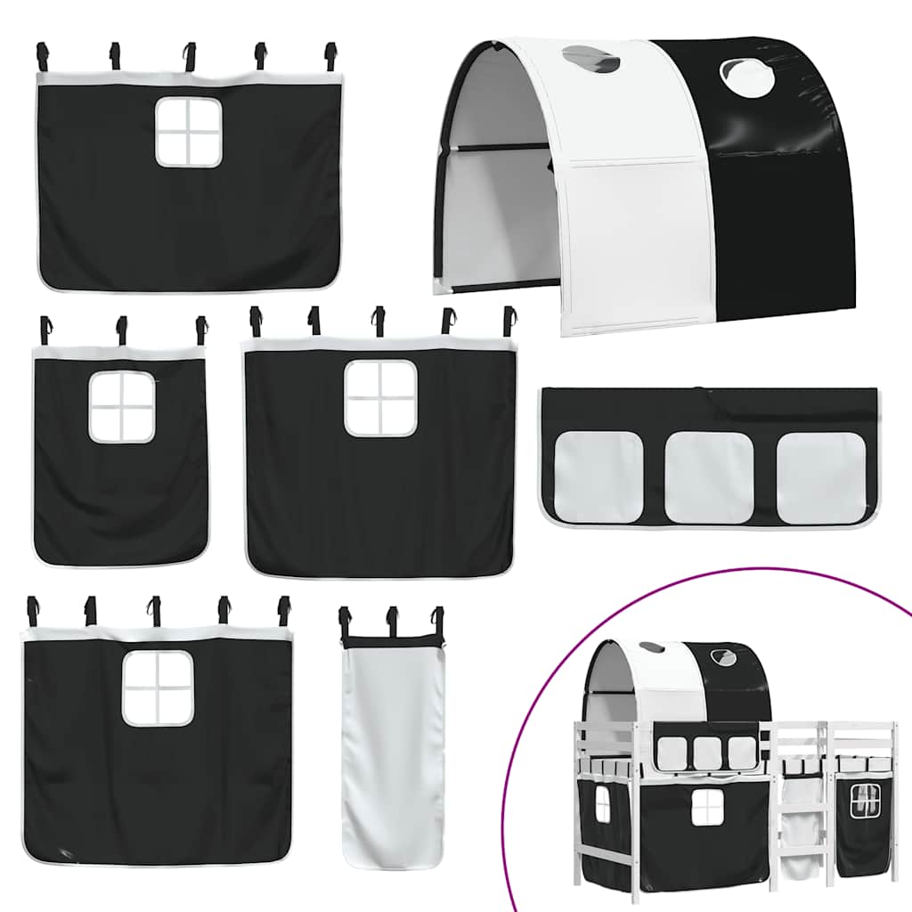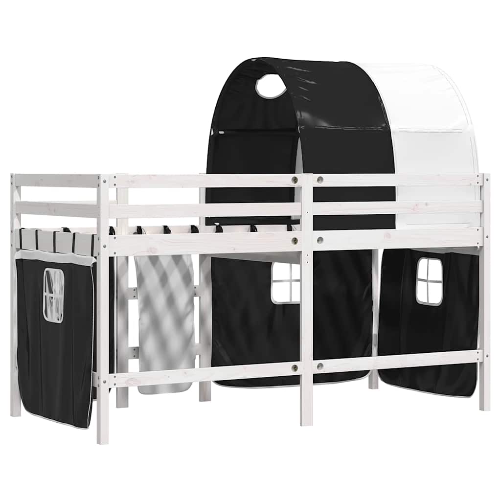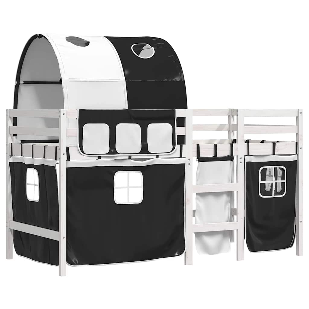 Letto a Soppalco con Tunnel Bambini Bianco e Nero 90x190cm Pino 3283856