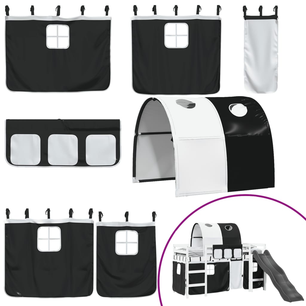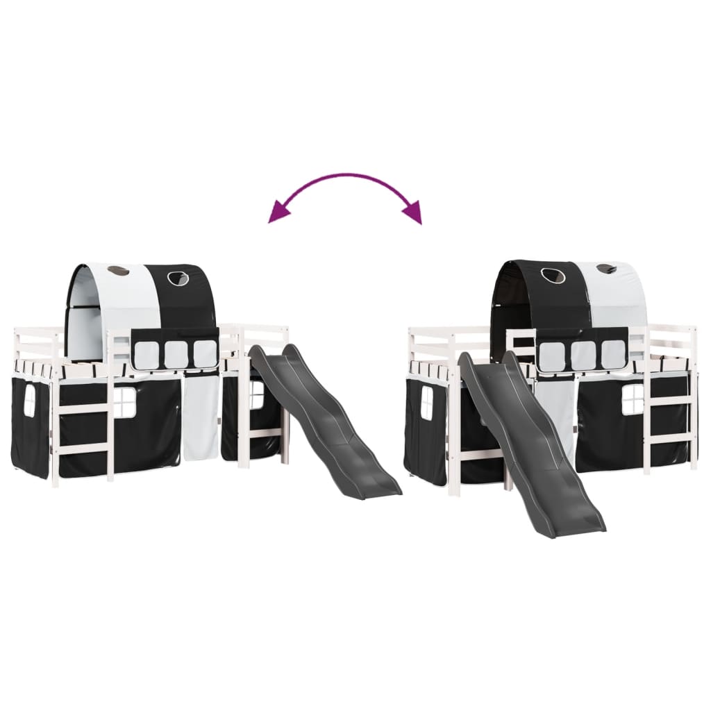Letto a Soppalco con Tunnel Bambini Bianco e Nero 90x190cm Pino 3309113