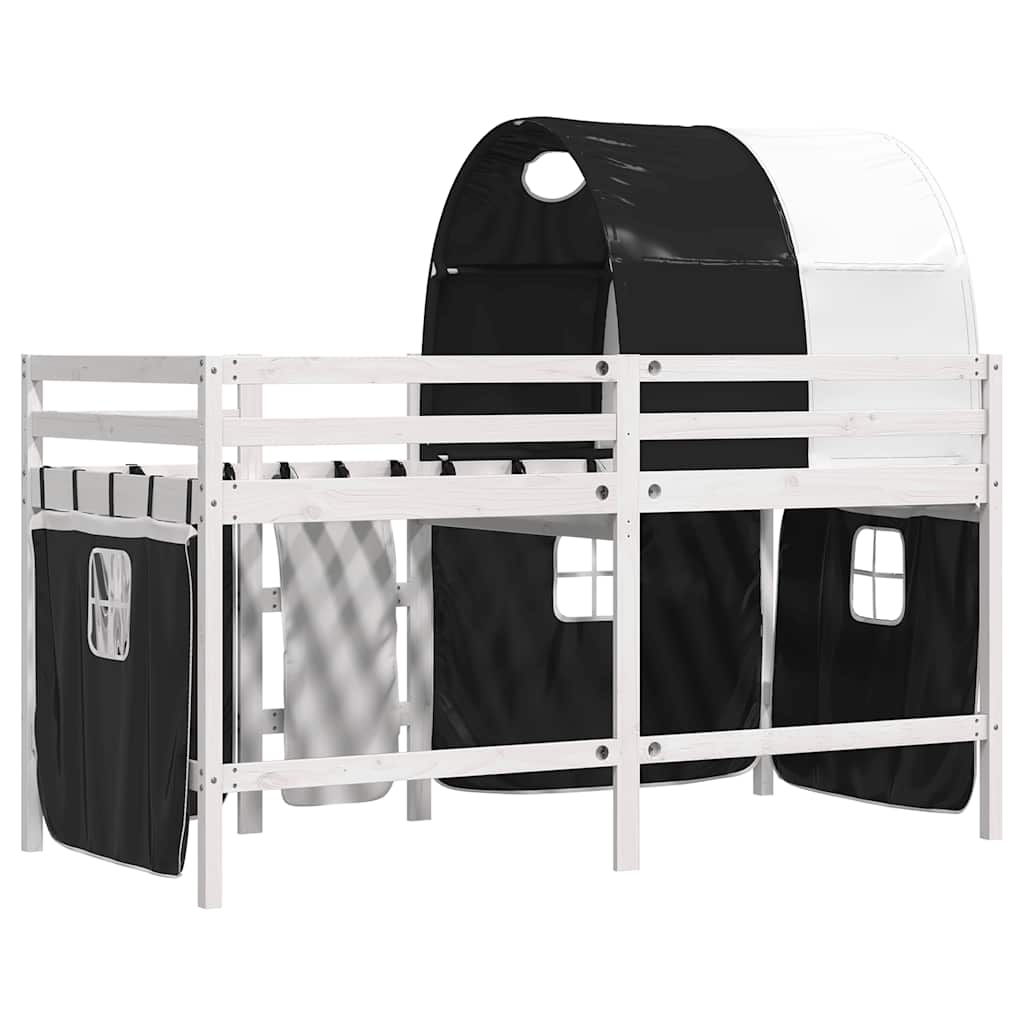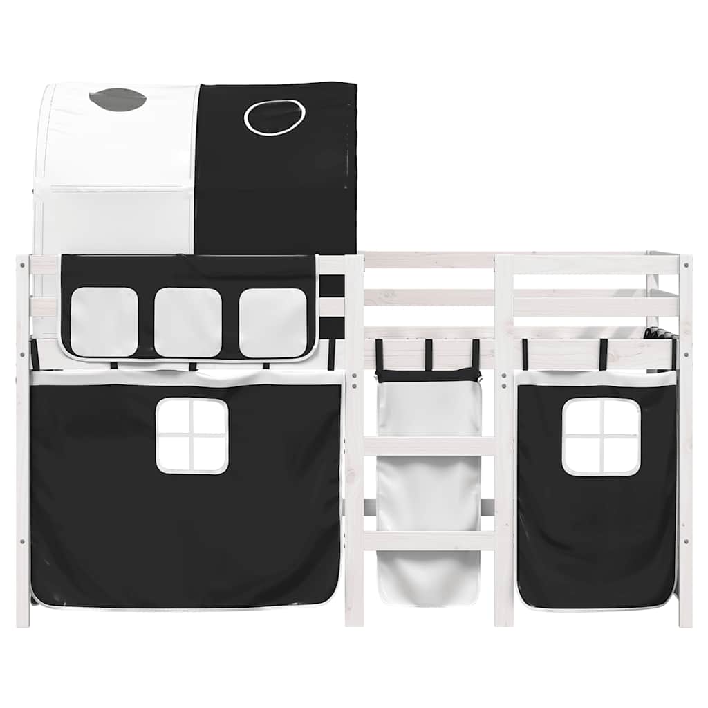 Letto a Soppalco con Tunnel Bambini Bianco e Nero 90x200cm Pino 3283847