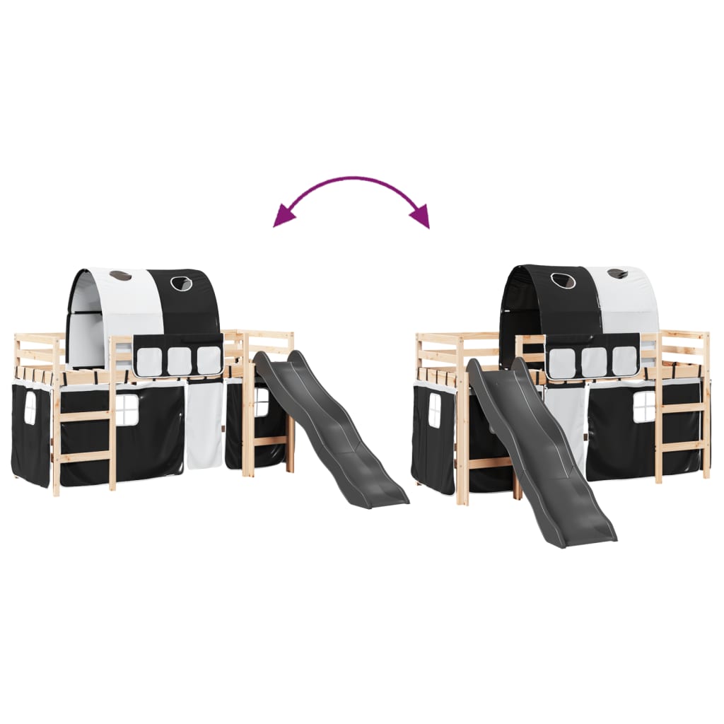 Letto a Soppalco con Tunnel Bambini Bianco e Nero 90x200cm Pino 3309101