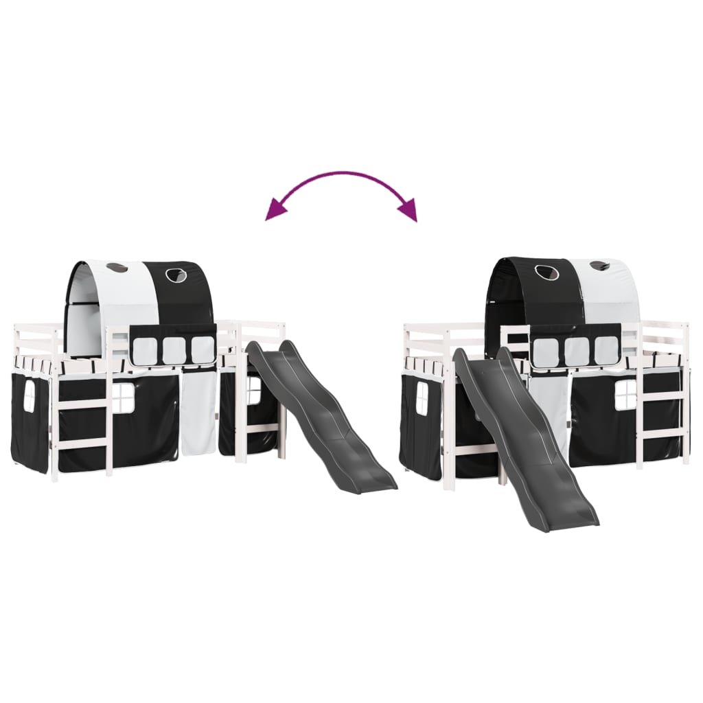 Letto a Soppalco con Tunnel Bambini Bianco e Nero 90x200cm Pino 3309104