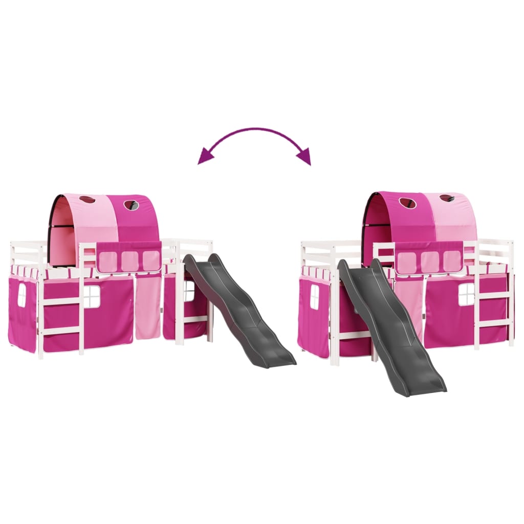 Letto a Soppalco con Tunnel Bambini Rosa 90x200cm Massello Pino 3309106