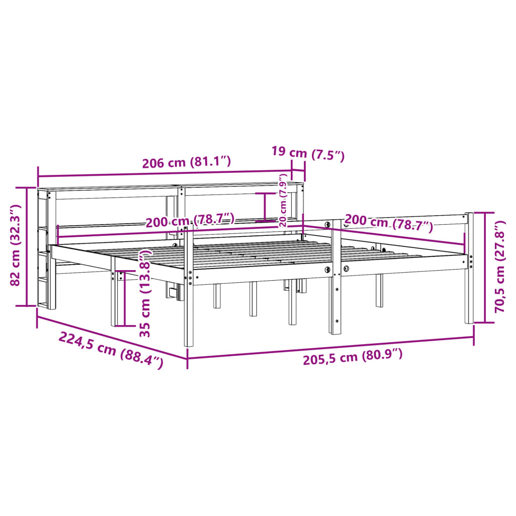Letto Anziani con Testiera Bianco 200x200cm Legno Massello Pino 3305874