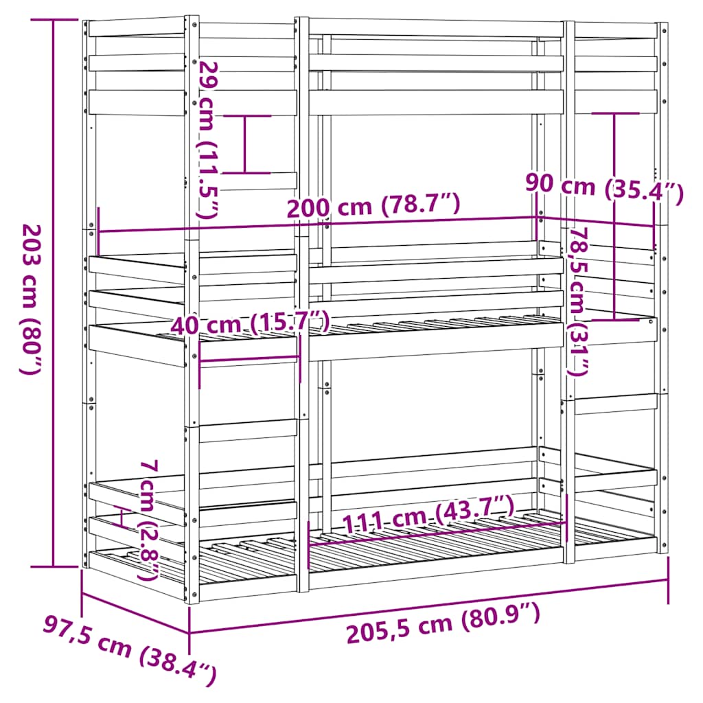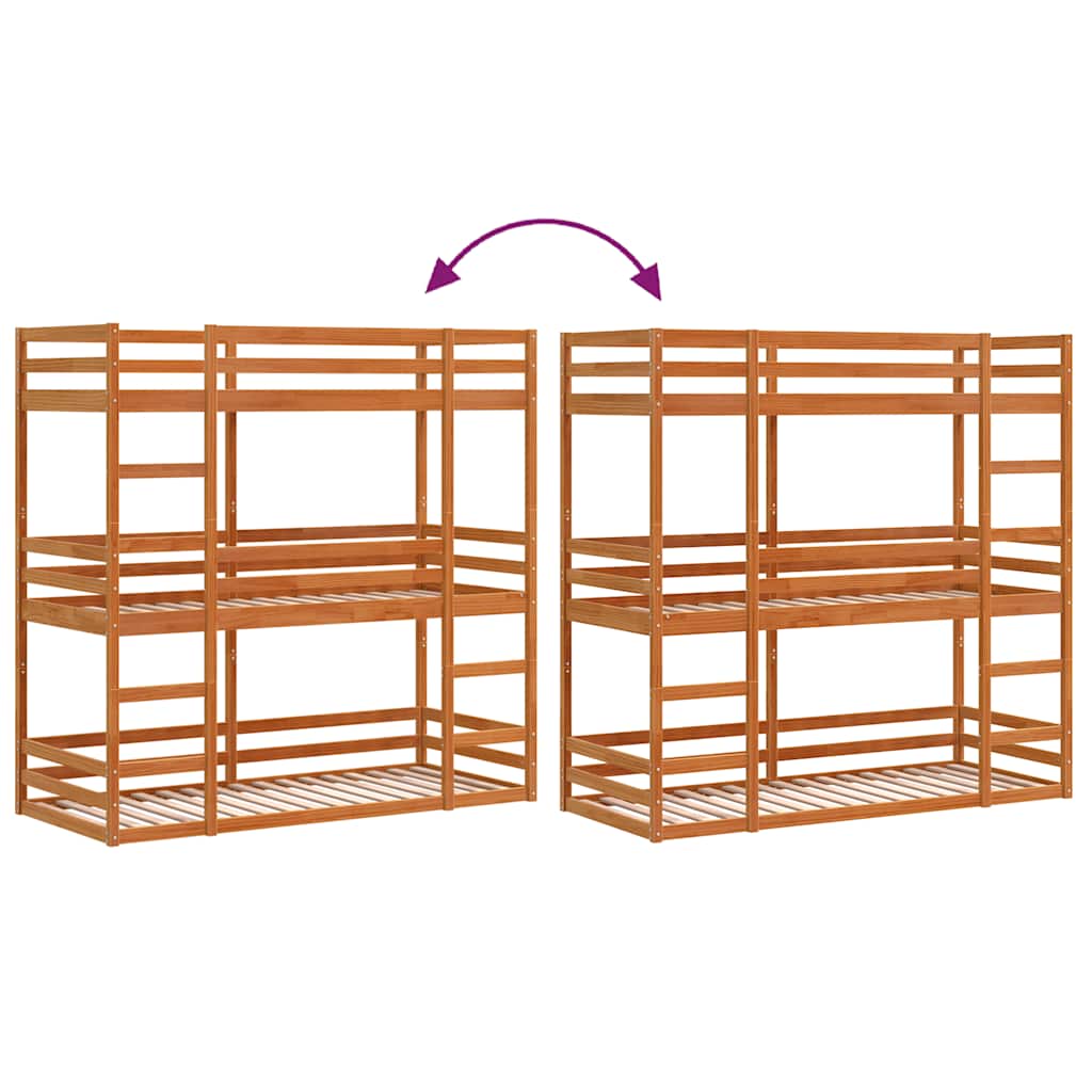 Letto Castello Triplo Marrone Cera 90x200cm Legno Massello Pino 3284256