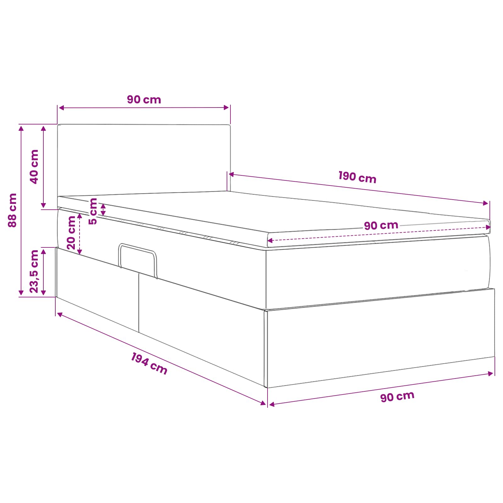 - 1 x Materasso (90 x 190 x 20 cm)