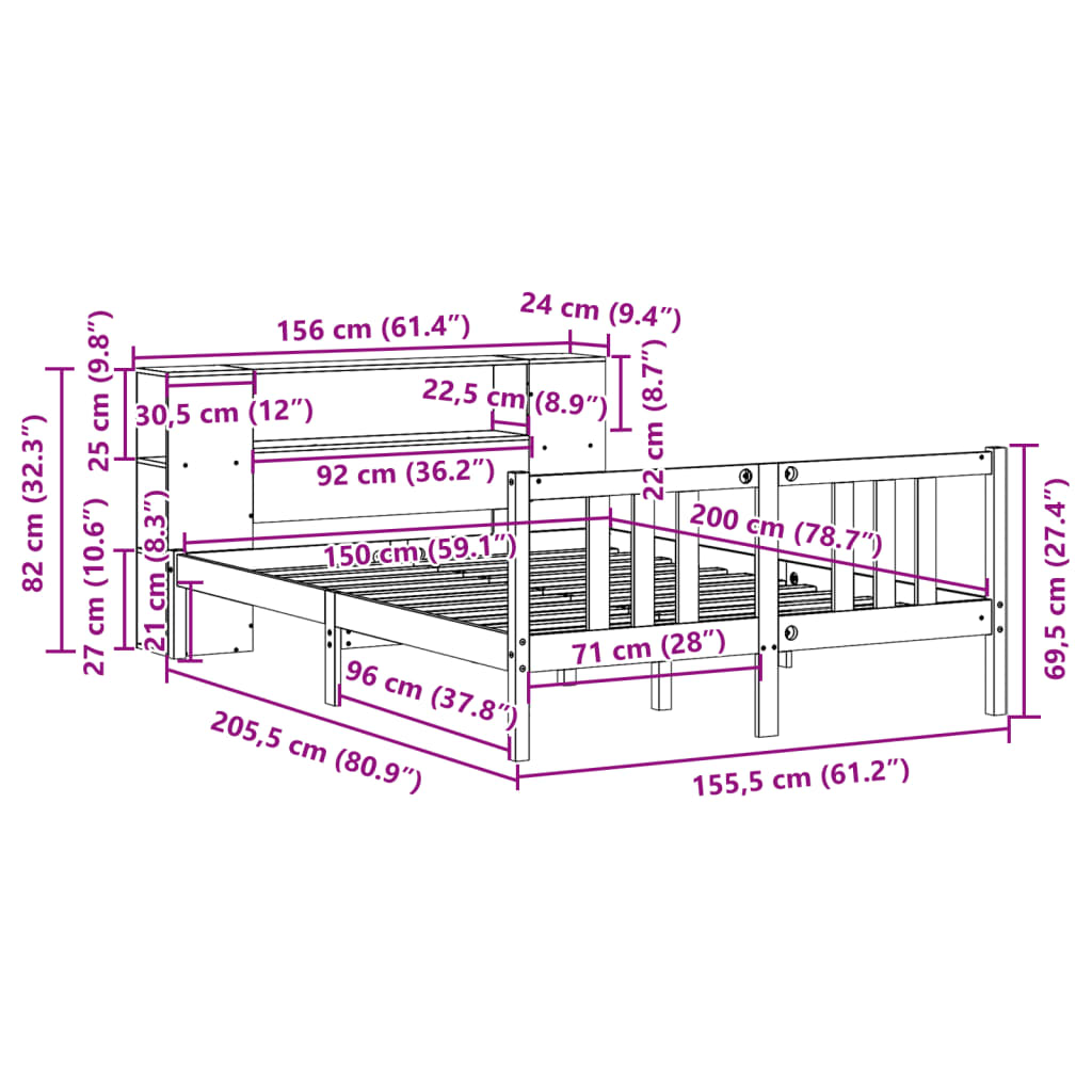 Letto Libreria senza Materasso 150x200 cm in Legno di Pino 3322283