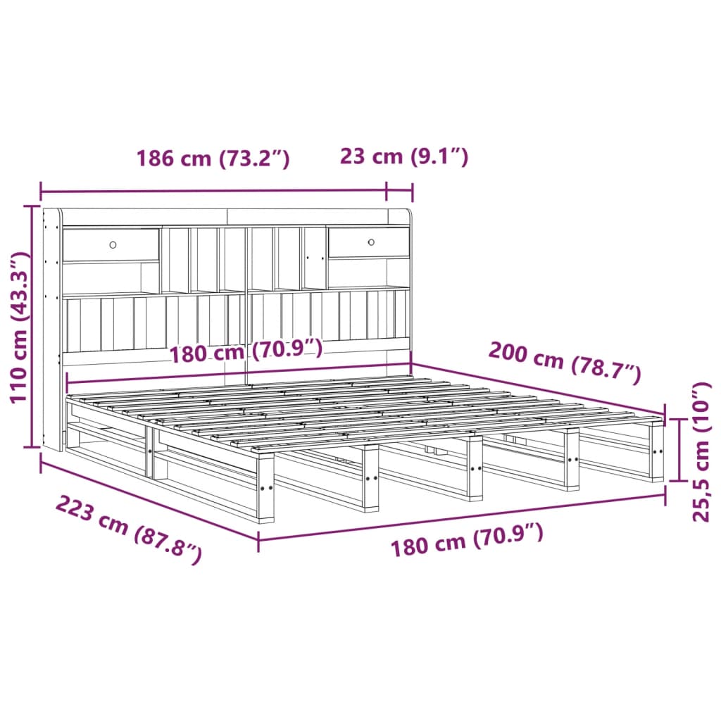 Letto Libreria senza Materasso 180x200 cm in Legno di Pino 3323968