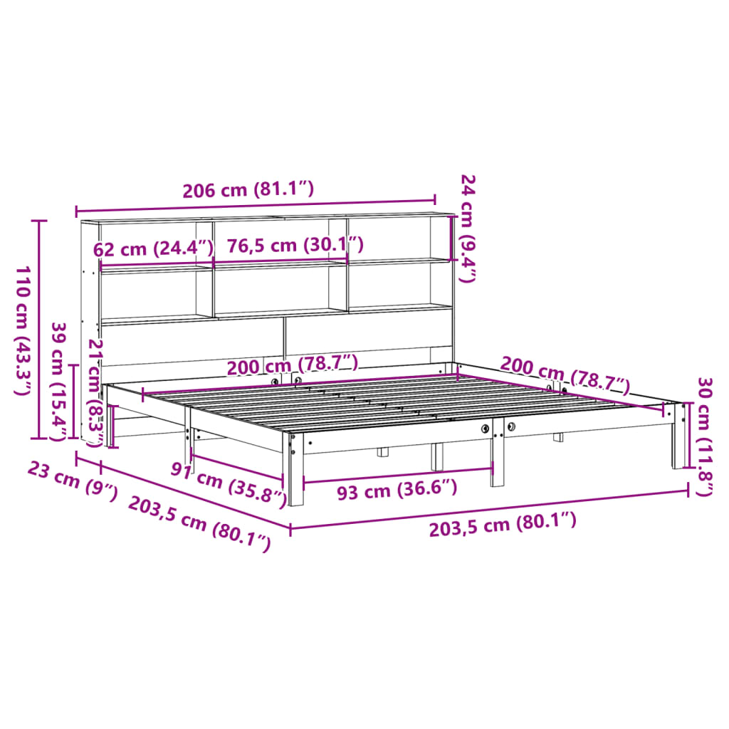 Letto Libreria senza Materasso 200x200 cm in Legno di Pino 3322570