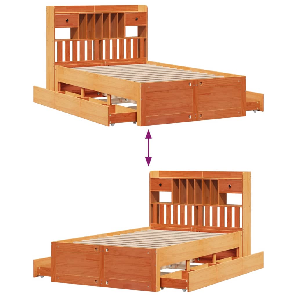 Letto Libreria senza Materasso Marrone Cera 135x190 cm in Pino 3308977