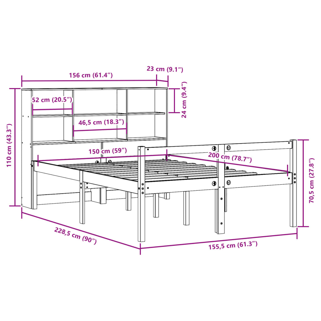 Letto Libreria senza Materasso Marrone Cera 150x200 cm Legno 3322035