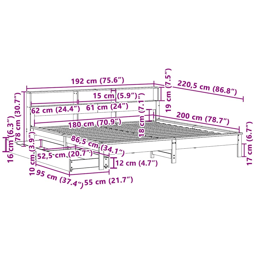 Letto Libreria senza Materasso Marrone Cera 180x200 cm in Pino 3309802