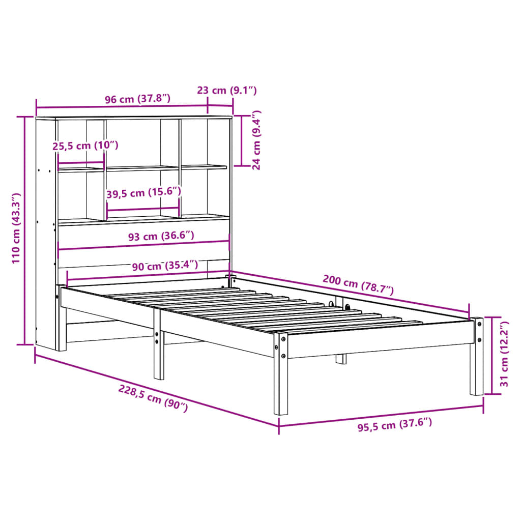 Letto Libreria senza Materasso Marrone Cera 90x200 cm in Pino 3321602
