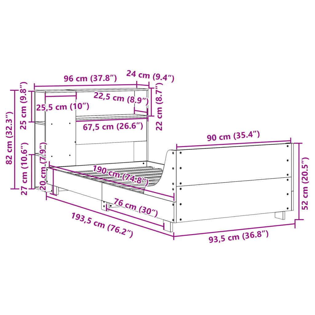 Letto senza Materasso Bianco 90x190 cm in Legno Massello Pino 3323672