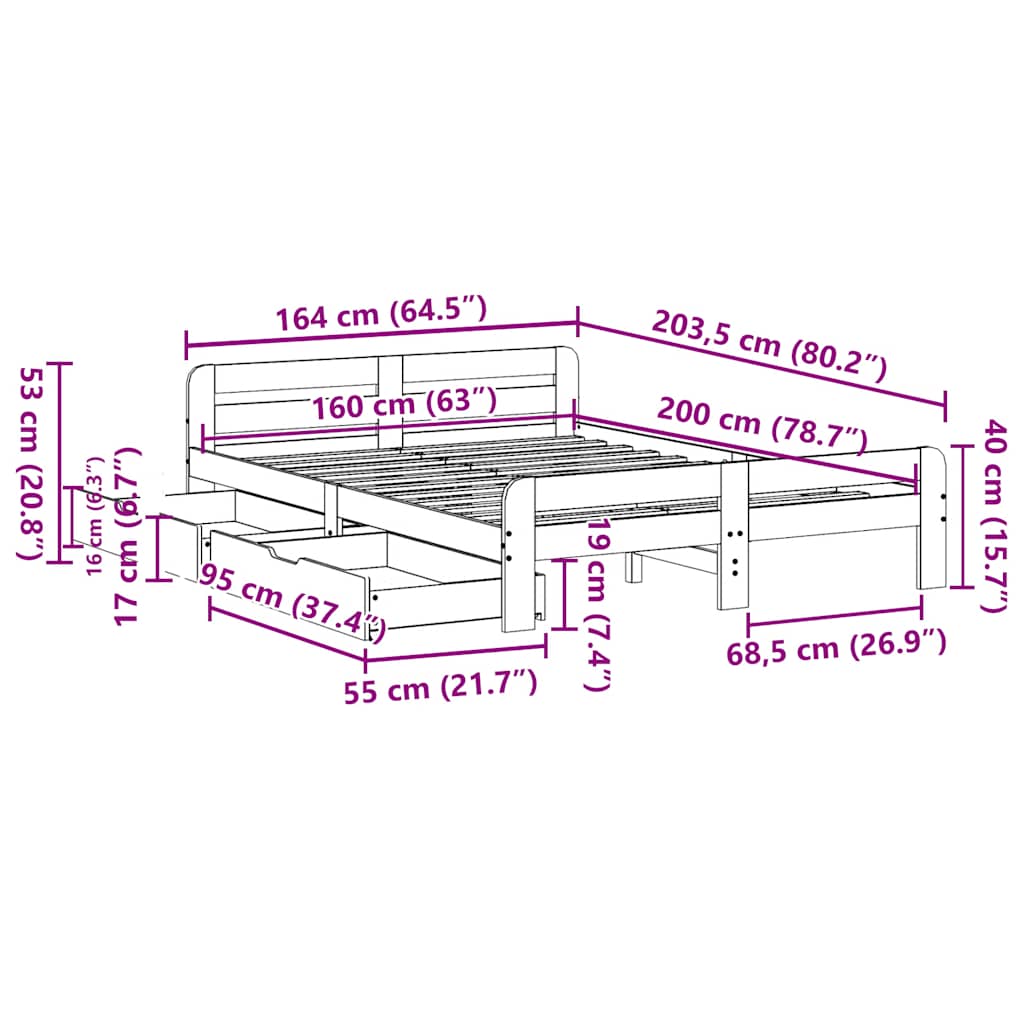 Letto senza Materasso Marrone Cera 160x200 cm in Legno di Pino 3309034