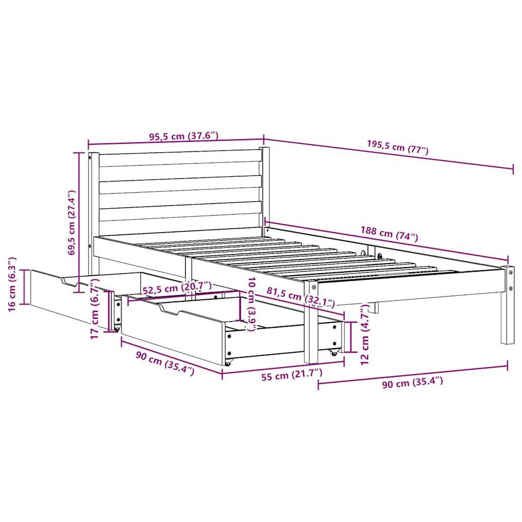 Letto senza Materasso Marrone Cera 90x190 cm in Legno di Pino 3301551