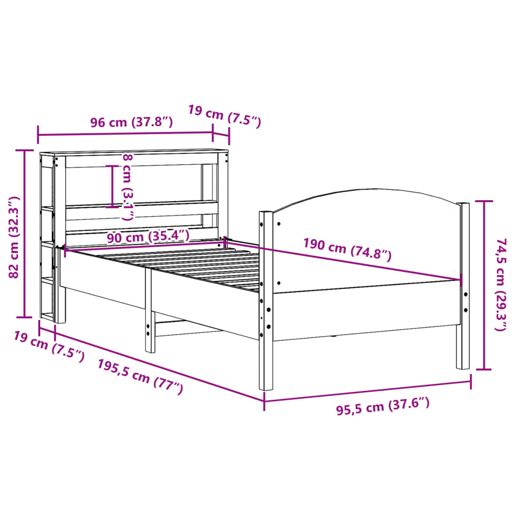 Letto senza Materasso Marrone Cera 90x190 cm in Legno di Pino 3306248