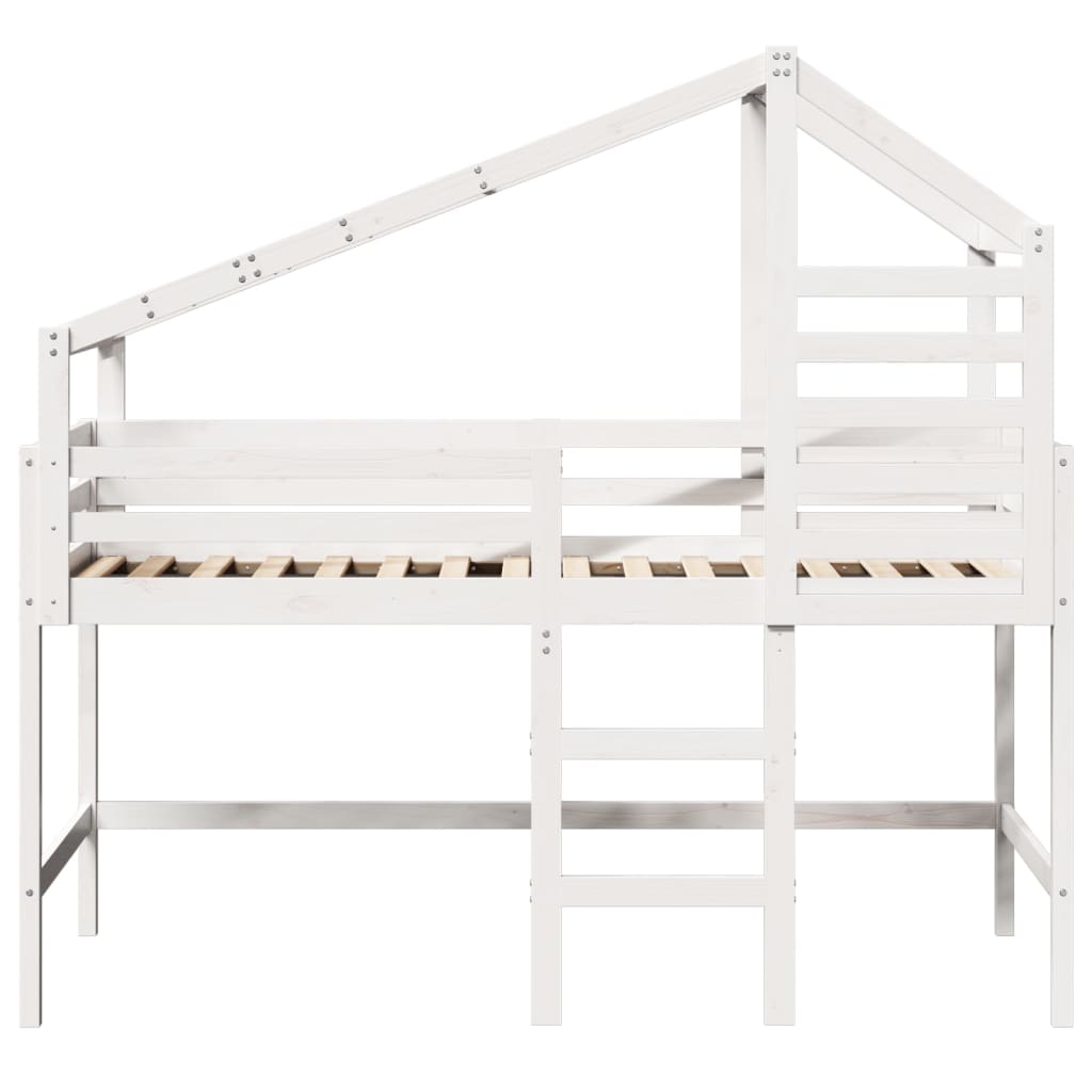 Letto Soppalco con Scala e Tetto Bianco 80x200 cm Massello Pino 3281987