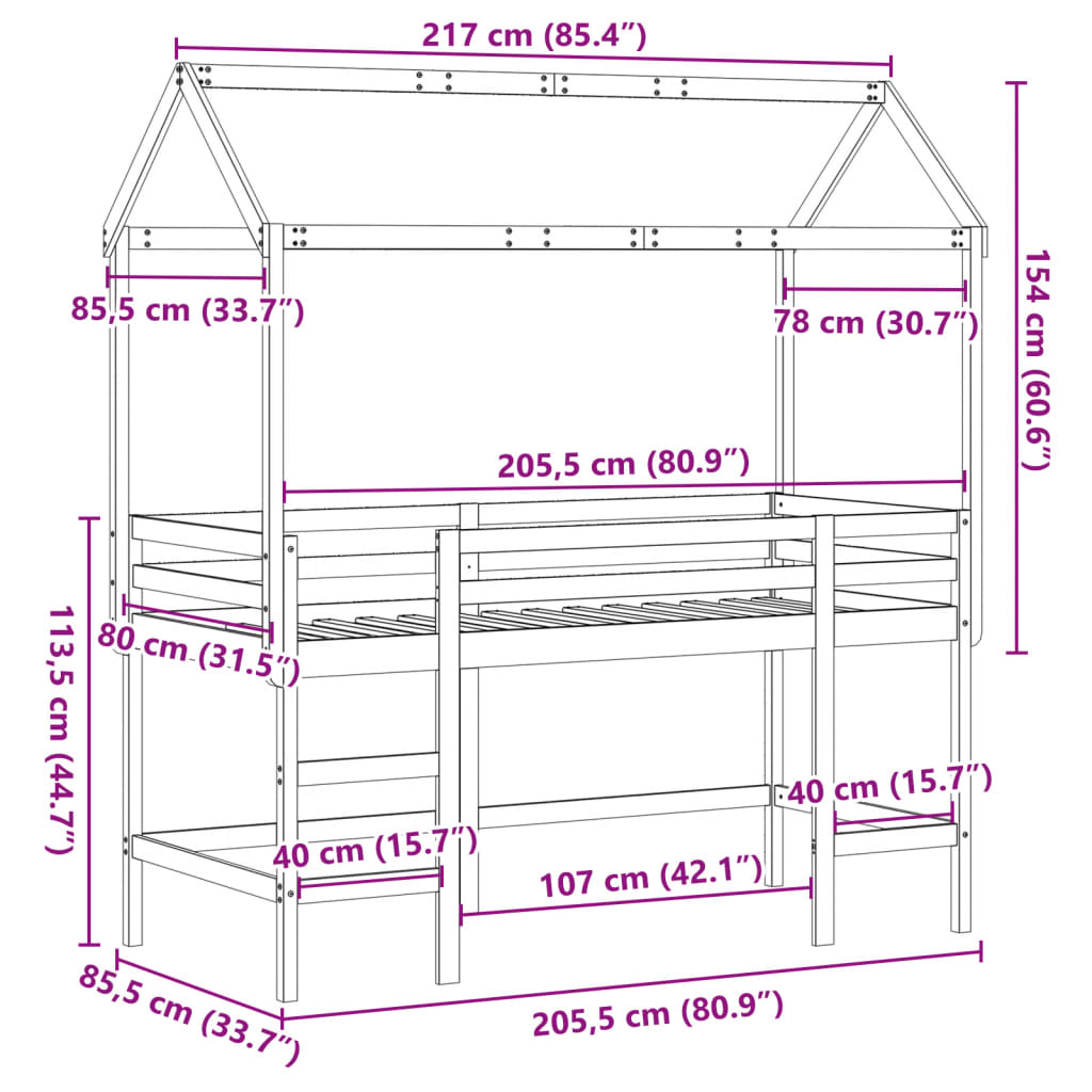 Letto Soppalco con Scala e Tetto Bianco 80x200 cm Massello Pino 3282153