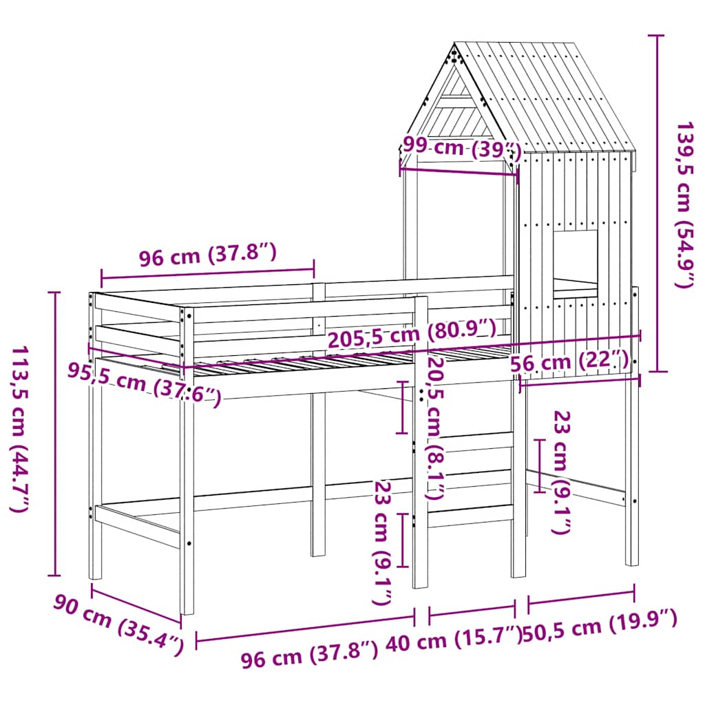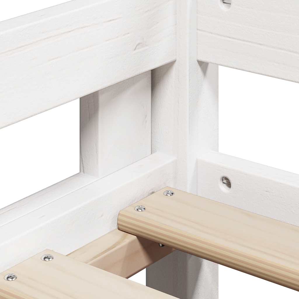 Letto Soppalco con Scala e Tetto Bianco 90x200 cm Massello Pino 3282025