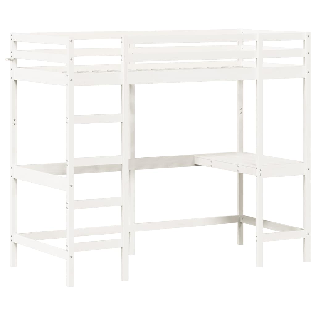 Letto Soppalco con Scrivania Bianco 90x190 cm Massello Pino 842859