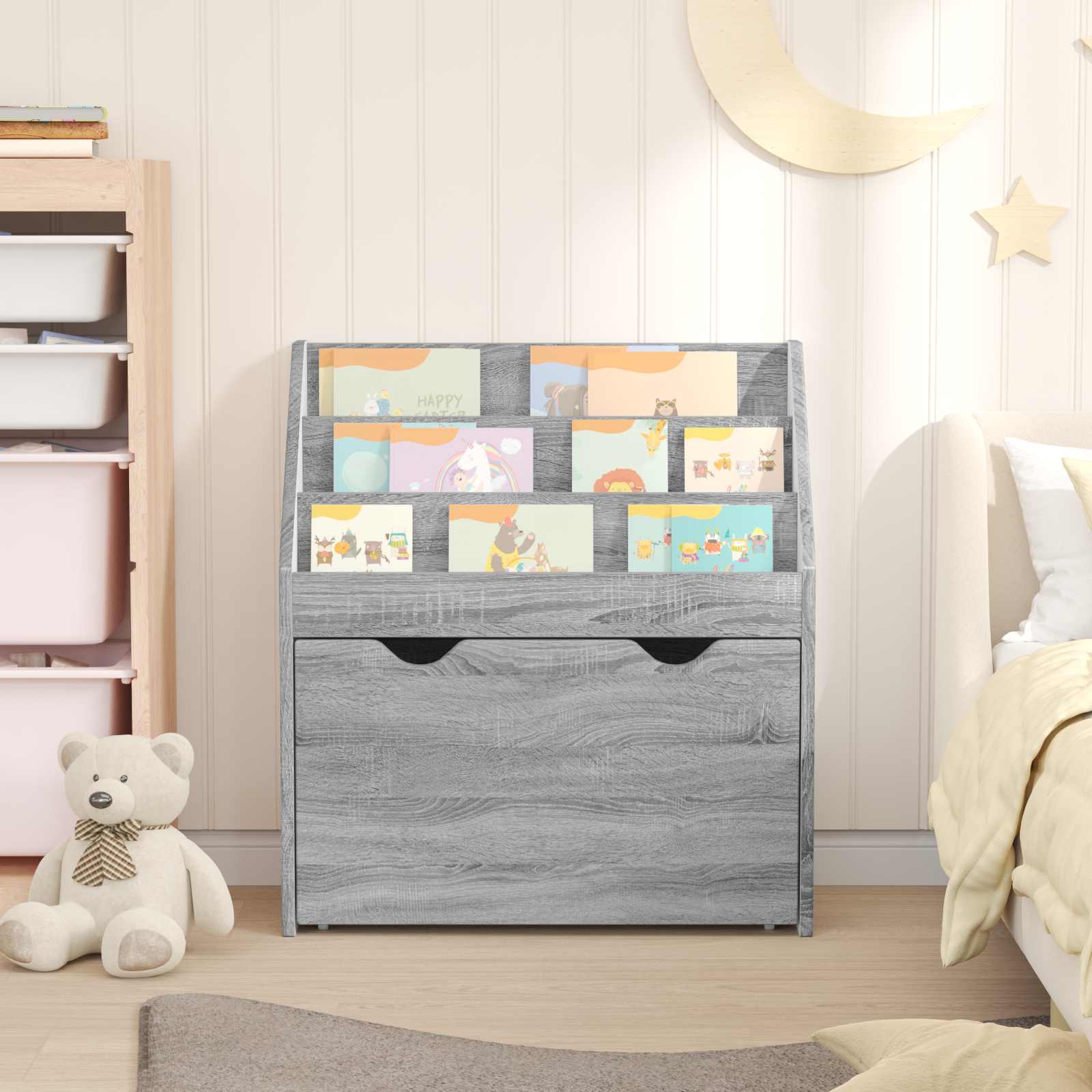 - Caratteristiche sicure per i bambini: Creata pensando ai più piccoli, la libreria ha mensole facili da raggiungere che stimolano l'organizzazione e l'indipendenza. Le curve morbide e la base stabile riducono i rischi, assicurando un ambiente sicuro per i tuoi piccoli.