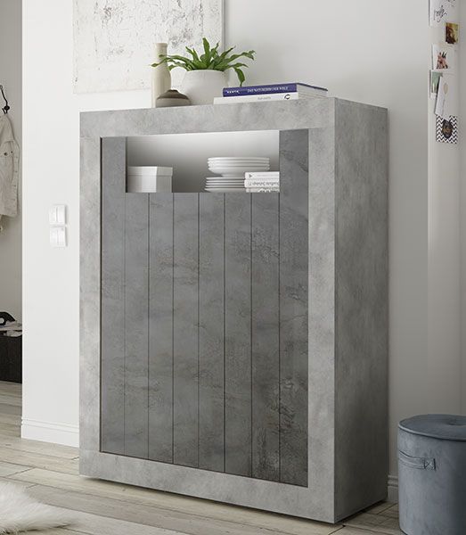 Madia alta moderna, 2 ante in finitura cemento e ossido