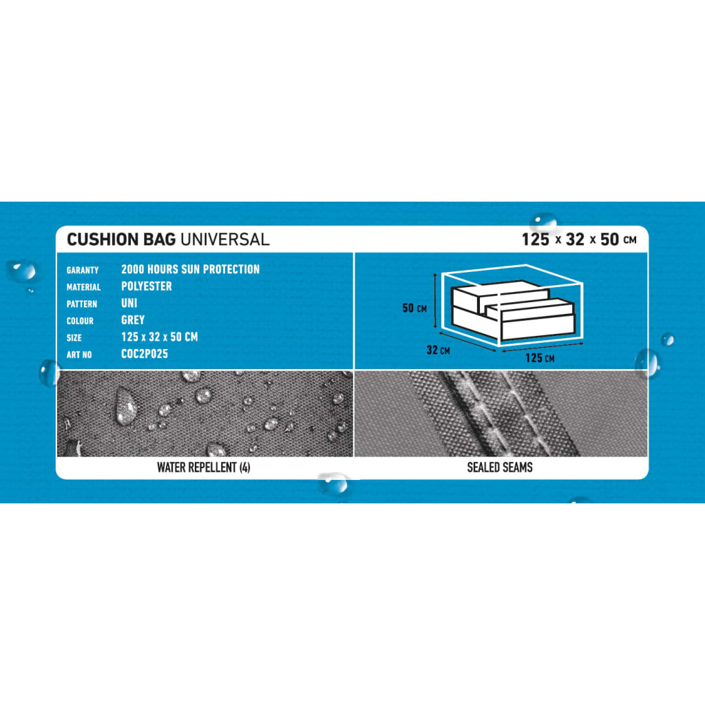 Realizzata in robusto poliestere, antistrappo e resistente ai raggi UV, questa copertura risulta inoltre un'ottima protezione per polvere e scolorimento. La copertura non ingombra molto spazio quando non è in uso e vi permette di proteggere nel tempo i cuscini dei vostri mobili da giardino, dall'usura causata dagli agenti atmosferici.