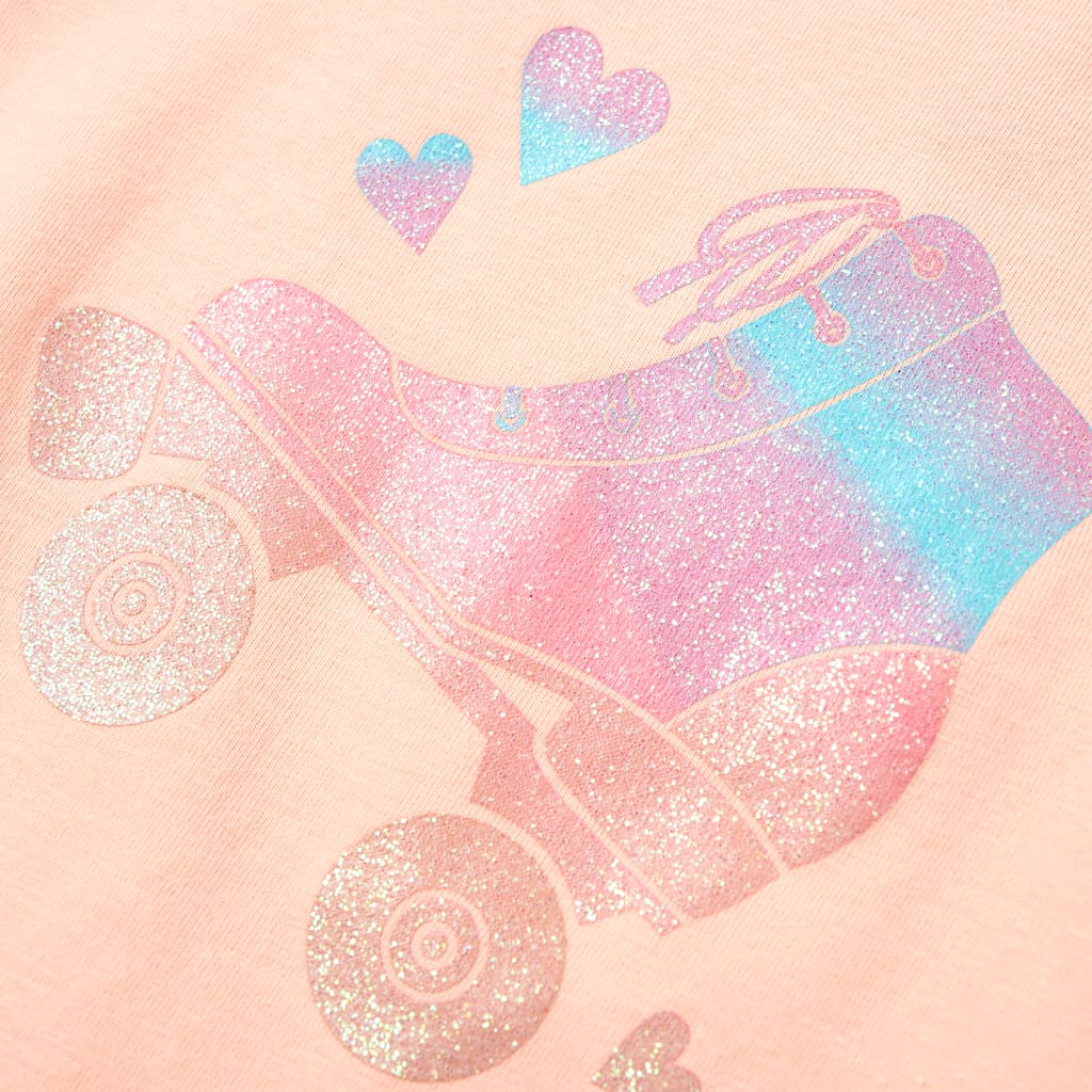 Questa maglietta per bambine ha maniche corte, girocollo, e un taglio dritto. Questa maglietta presenta sul petto un pattino a rotelle brillantinato. La maglietta a maniche corte per bambine è realizzata al 95% in cotone e al 5% in elastan, per offrire comfort e traspirabilità.