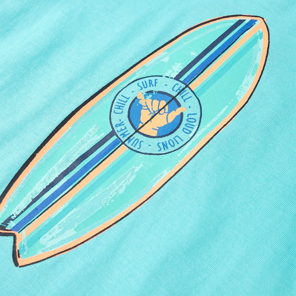 Questa maglietta per bambini ha maniche corte, girocollo, e un taglio dritto. La maglietta per bambini presenta una tavola da surf sul davanti. La maglietta per bambini è realizzata al 100% in cotone per offrire un tocco morbido e confortevole.