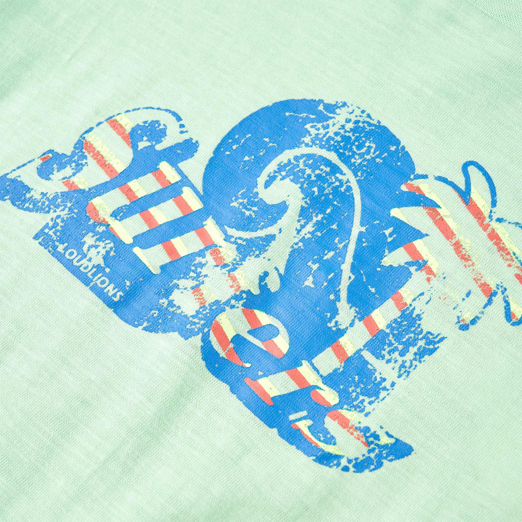 Questa maglietta per bambini ha maniche corte, girocollo, e un taglio dritto. La maglietta per bambini presenta le stampe di un'onda, un albero, e la parola "Surfers". La maglietta per bambini è realizzata al 100% in cotone pettinato per offrire un tocco morbido e confortevole.