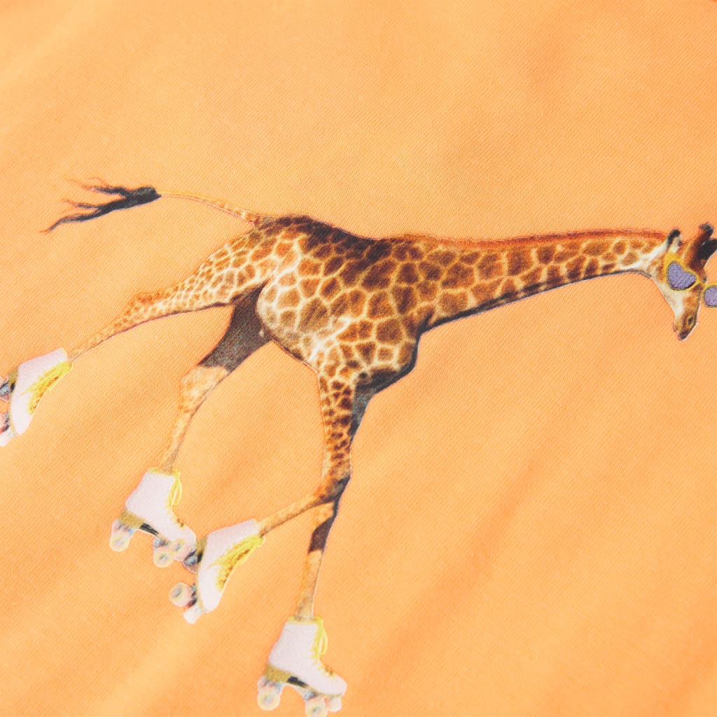 Questa maglietta per bambine ha maniche corte, girocollo, e un taglio dritto. Questa maglietta presenta sul petto una giraffa con i pattini a rotelle. La maglietta a maniche corte per bambine è realizzata al 95% in cotone e al 5% in elastan, per offrire comfort e traspirabilità.