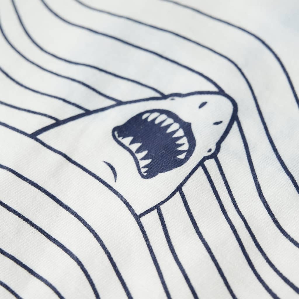 Questa maglietta per bambini ha maniche corte, girocollo, e un taglio dritto. La maglietta per bambini presenta uno squalo che nuota nel mare. La maglietta per bambini è realizzata al 100% in cotone per offrire un tocco morbido e confortevole.