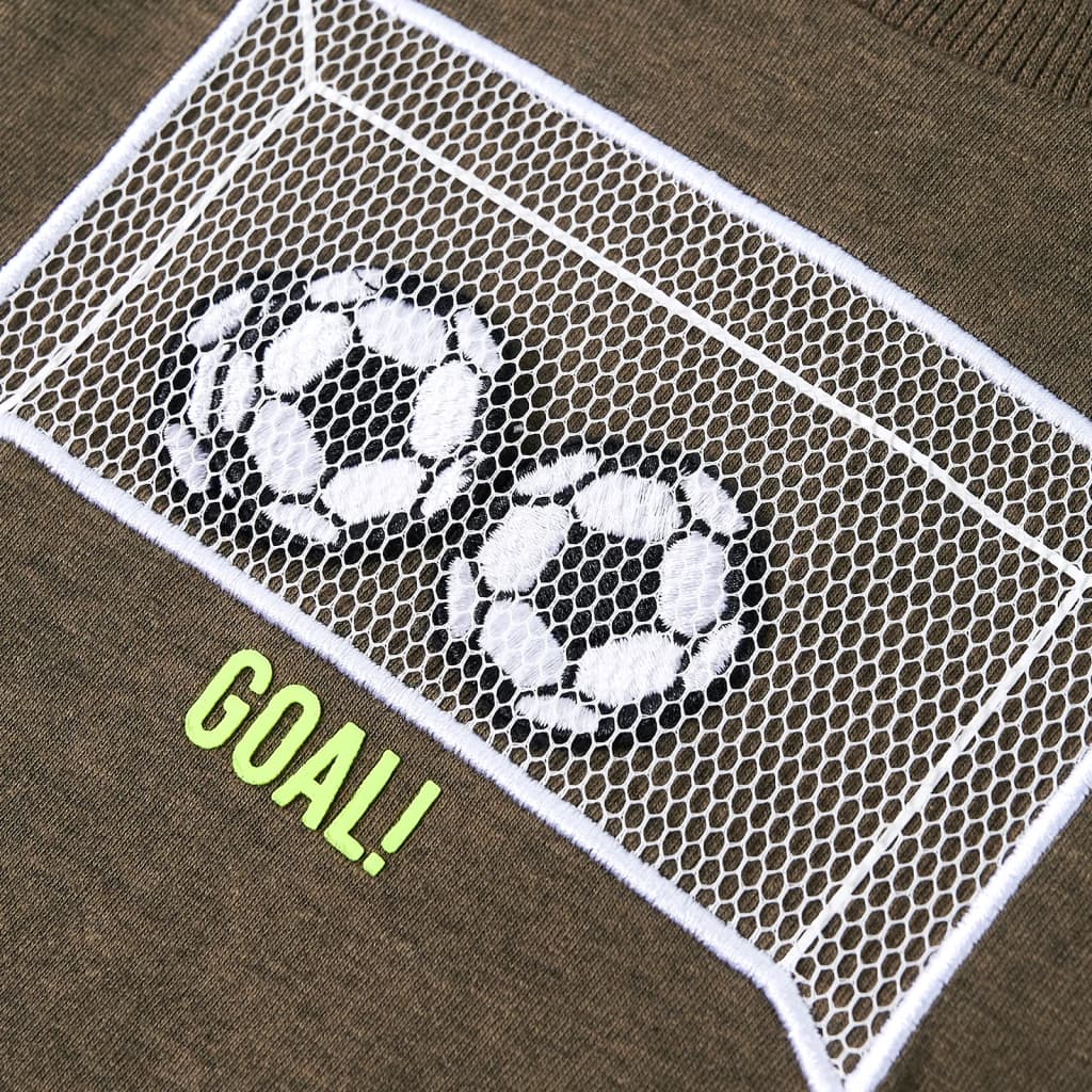 Questa maglietta per bambini ha maniche lunghe, girocollo, e un taglio dritto. Questa maglietta color cachi mélange presenta una porta da calcio. La maglietta a maniche lunghe per bambini è realizzata all'80% in cotone e al 20% in viscosa con un lavaggio al silicone e agli enzimi per conferire un tocco morbido e confortevole.