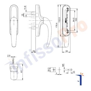 Maniglia cremonese Alutec vela A503220 Colore: Avorio RAL 1013