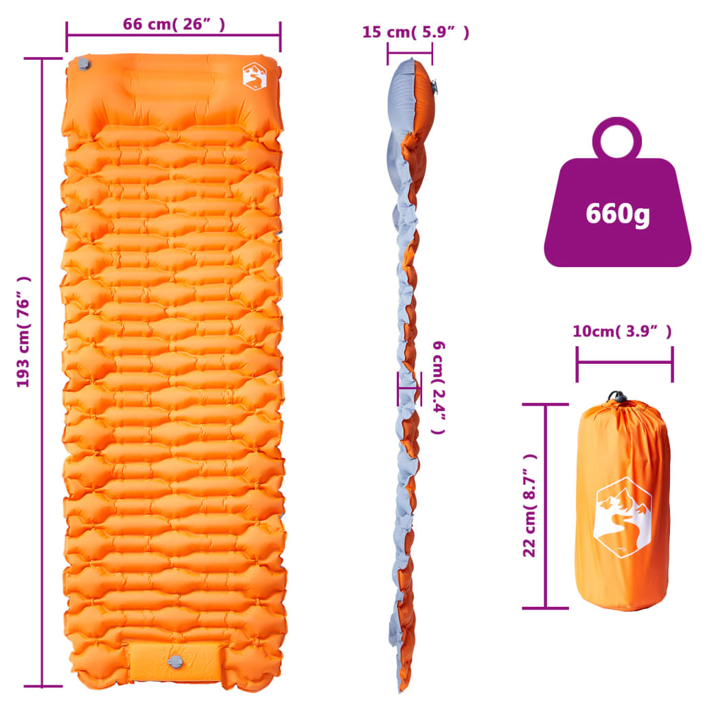 Materasso Campeggio Autogonfiabile Cuscini 1 Persona Arancio 4007104