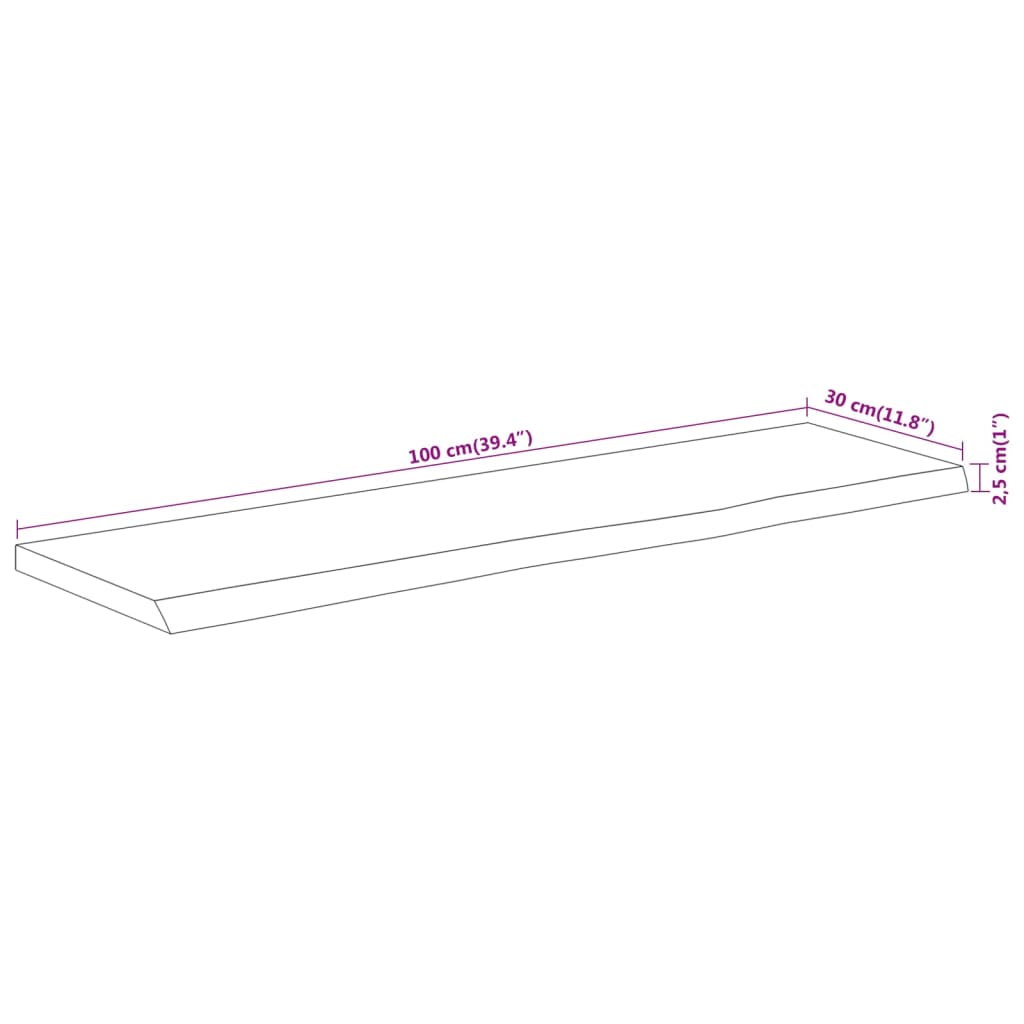 Mensola Muro 100x30x2,5cm Rettangolare Legno Acacia Bordi Vivi 370240